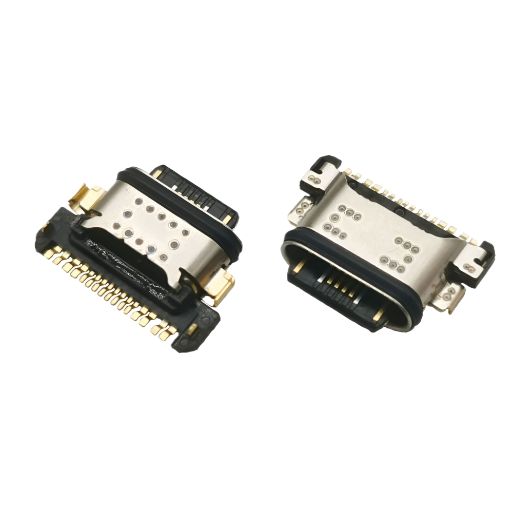 TYPE C 16P防水母座 板上單排SMT 四腳沉板1.15MM 長度L=9.4MM 鍍鉑金 防水IP67 VIVO X30尾插